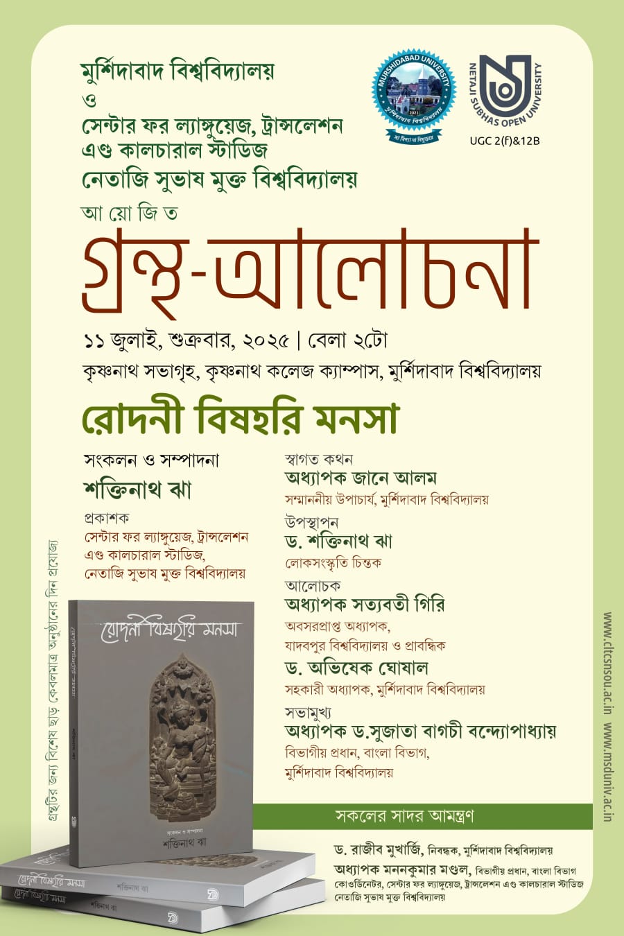 - গ্রন্থ আলোচনা অনুষ্ঠান - রোদনী বিষহরি মনসা - উপস্থাপন অধ্যাপক শক্তিনাথ ঝা